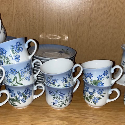 Mycket elegant porslin. Silverdekor och hela ytan skimrande.