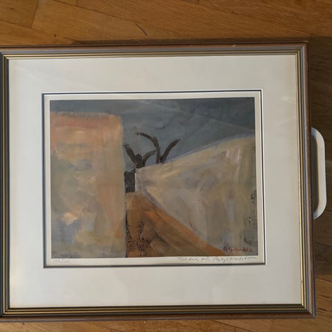 Konstverk med abstrakt motiv i jordnära färger.