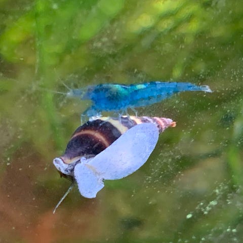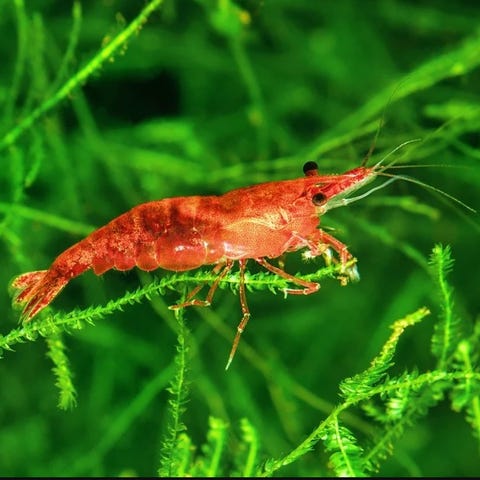 Lättskötta körsbärsräkor. Räkorna är mer eller mindre nyfödda.