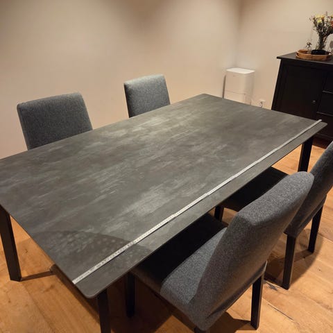 Bordet har flera år på nacken och därav vissa repor och märken. Bordet är dock mycket stabilt.