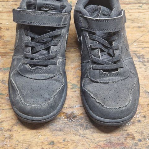 Nike barnskor i storlek 36, svart färg, avsedda för pojkar. Skorna har snörning och är tillverkade i textilmaterial med gummisula.