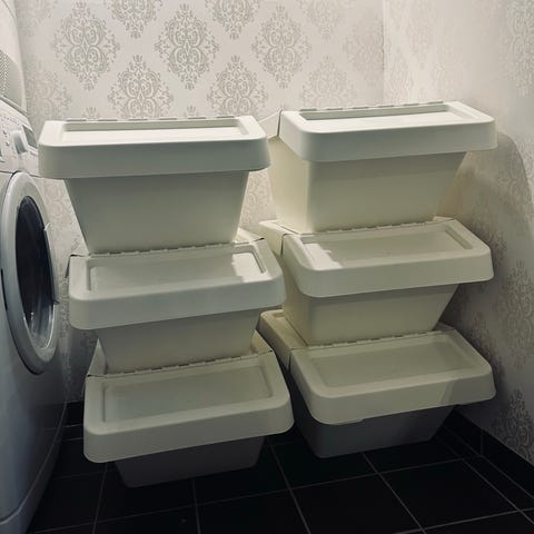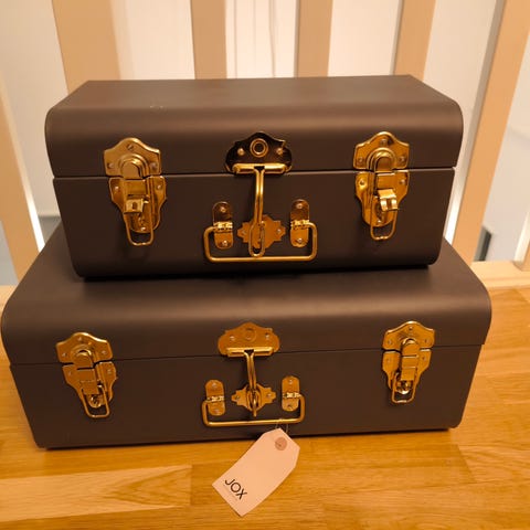Helt nya förvaringslådor i trä från JOX - en rosa och en vit