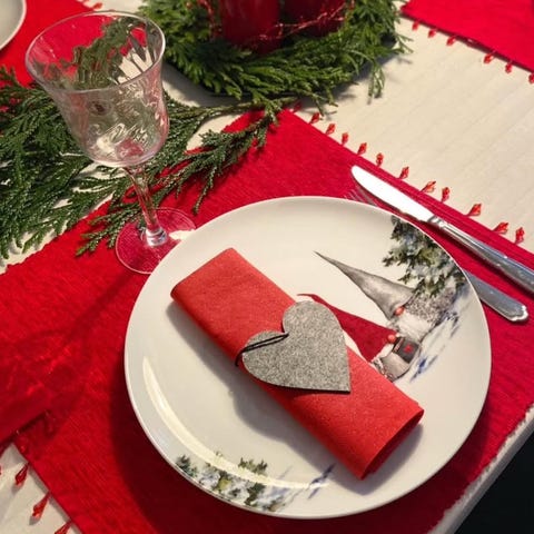 Åhléns Home tallrikar med julmotiv i set om 36 delar . Tallrikarna har dekorativa mönster med gröna och röda färger, inklusive texten 'Dinner Time'. Materialet är keramik och de är avsedda för servering vid måltider.