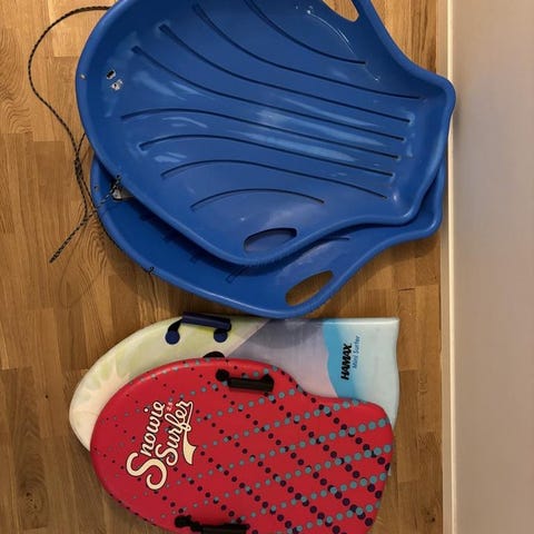 Pulkor med handtag, den blå även med dragsnöte