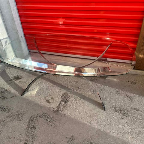 Unikt soffbord med glas och färgad design