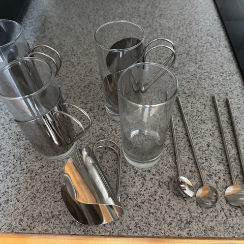 Iittala Paula 4 liter bålskål i glas med 5 koppar och slev. Allt i nyskick