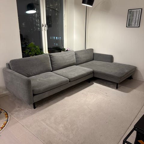 Materialet är intakt och kuddarna inrycker bra skick. Lätt att komma under med dammsugaren.