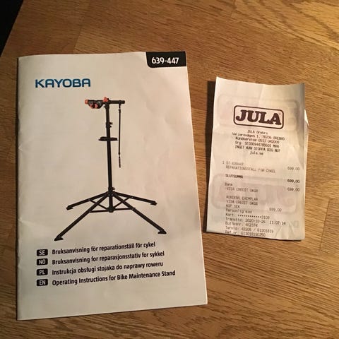 Cykelhållare tillverkad i metall med flera fästen och handtag för stabil montering. Passar för olika typer av cyklar och är lämplig för användning i garage eller verkstad. Designad för att hålla cykeln säkert på plats under reparation eller förvaring.