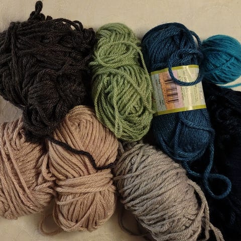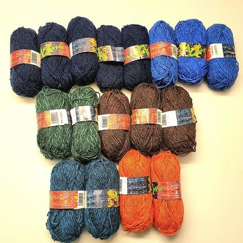 9 nystan a 50 g och 1 nystan a 100 g marinblått garn.