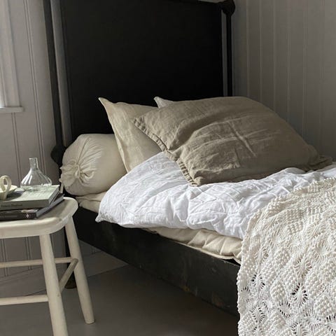 En gedigen träsäng i gammal stil. Från min mormors farmors tid.