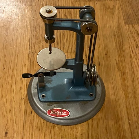 38 cm hög. Med glaskupa och rejäl inte den plasten som i mindre klenare. Kommer i sin kartong. I bra skick.
