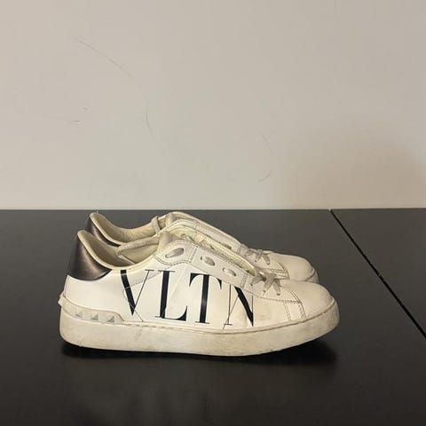 Valentino sneakers i storlek 36. Skorna har en beige och vinröd färgkombination med detaljer i olika material.
