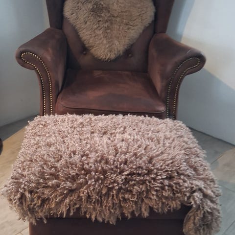 Fåtölj med pall i märket Brittfurn. I fint skick.