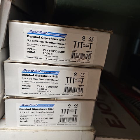 Spånskiveskruv mjukbandat 2 lager gips mot stålregel.