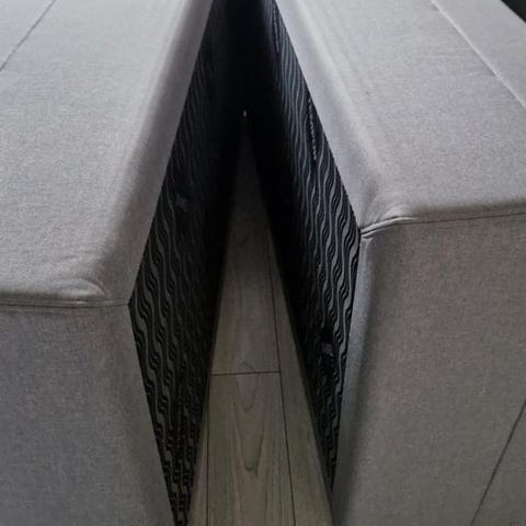 Tempur mjuk kontinentalsäng, 160 cm bred. Nuvarande ben är 20 cm höga och går att byta. Hål för montering av sänggavel.