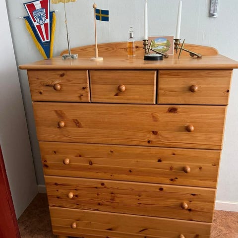 Byrå i furu med 4 stora lådor och 4 små lådor