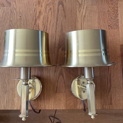Säljer ett par snygga retro/vintage spotlights i mässing. Perfekt för dig som gillar tidlös design med lite lyxig känsla. Lamporna kan vinklas och passar utmärkt som punktbelysning på hylla, skåp eller vägg.