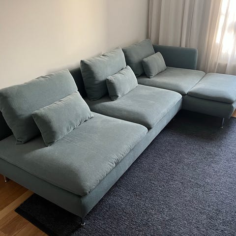 Jag säljer en äldre modell av IKEA Söderhamns soffklädsel. Mörkblå/grå.
