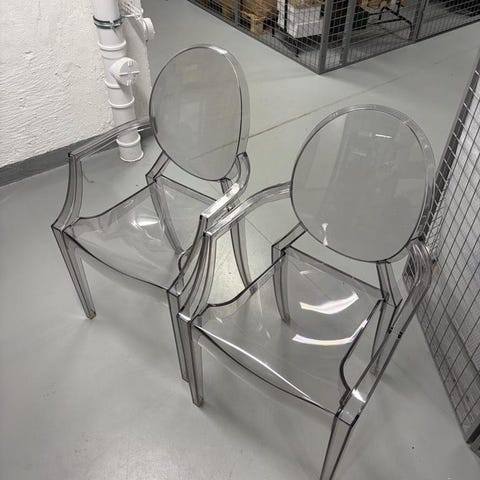 Har 8 st stolar som efterliknar Kartell Louis Ghost i bra skick. Kan sälja 8st eller 4st.