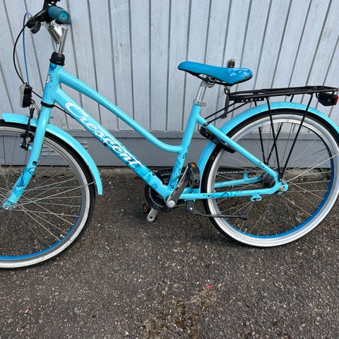 Cykel embla 26 tror jag. Köpte till dottern som var 12 år 140 cm. Ute med den en gång sedan dess har den stått still snart 2 år. Fint skick och inga kända fel. Lite rost på packet hållaren annars allt som nytt