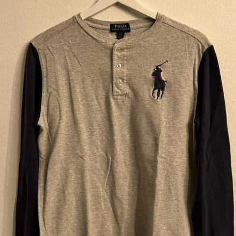 Röd t-tröja från Polo by Ralph Lauren i storlek 6 (men kan vara aningens mindre) tröjorna tenderar att vara mindre i storlek än byxorna.