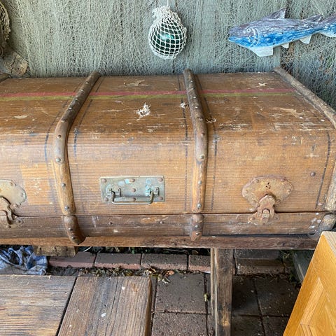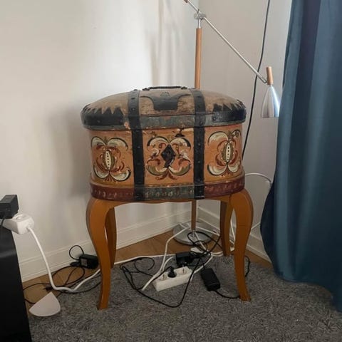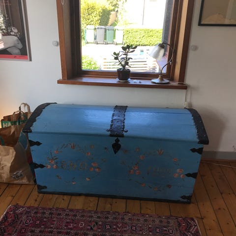 Allmogekista från 1832. 140 cm bred, 60 cm djup och 73 cm hög.