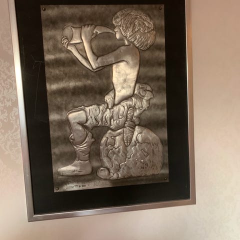 Roland Lindblom Svenkt Tenn Handarbete med John Bauer motiv 40x55.5cm . Ej inramad.