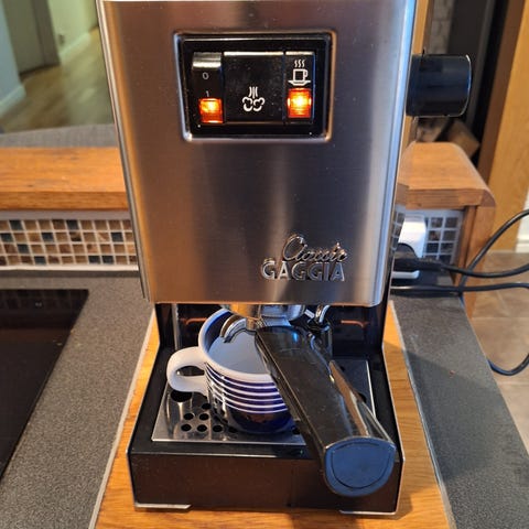 Perfekt fungerande maskin med de tillbehör som krävs. Nätt och snygg i retrostil.