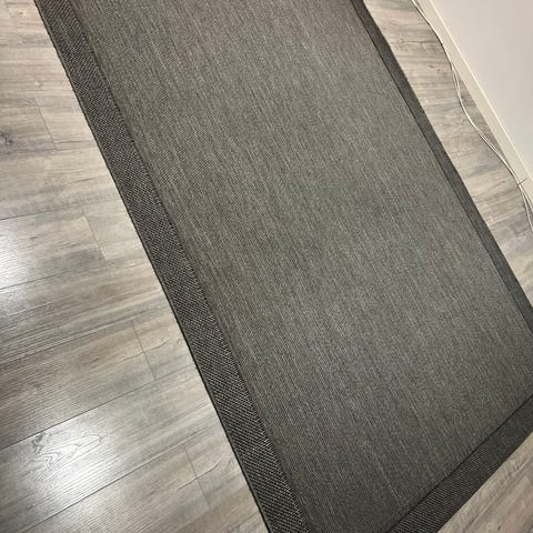 Idaho svart matta med måtten 133x190 cm. Mattan har ett geometriskt mönster i svart och grå nyanser.