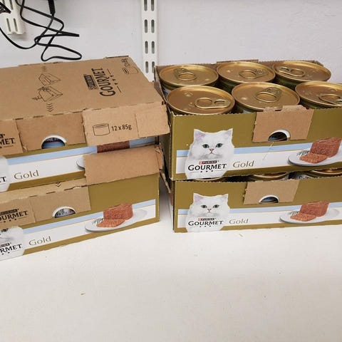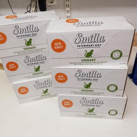 Tre oöppnade förpackningar kattgräs med tillhörande fat säljes.