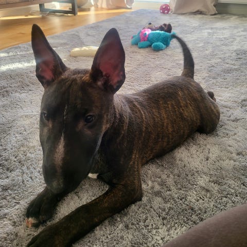Miniatyrbullterrier hane 10 månader gammal söker ett föralltid hem!
