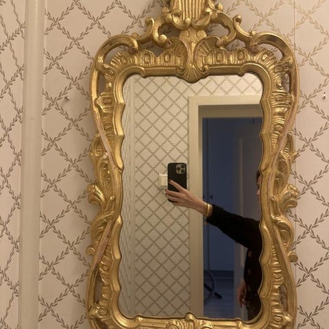 Antik träramad spegel i mörkt trä