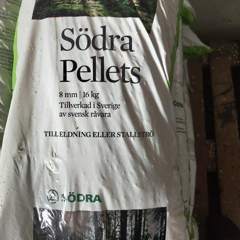 Träpellets 8mm 16 kg, 50 säckar hämtas på plats.