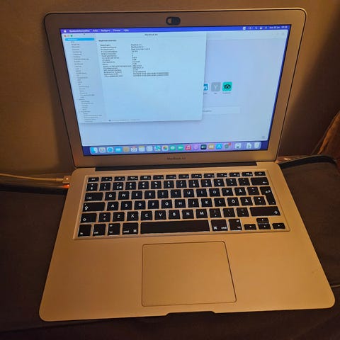 Apple MacBook Air laptop 13" Aluminiumchassi i silverfärg. Standardtangentbord och styrplatta. Strömkabel x2 medföljer