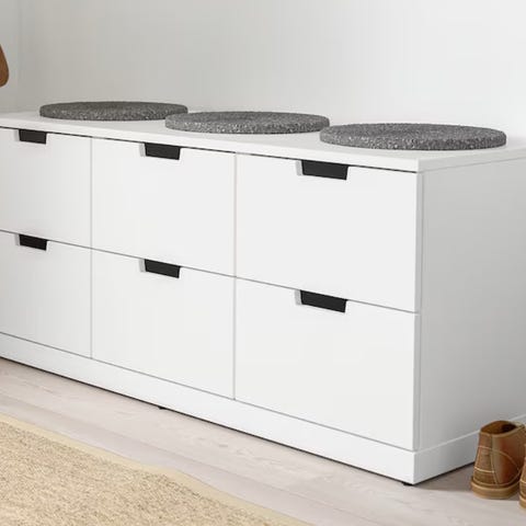 IKEA NORDLI byrå med 2 lådor + glastopp – vit