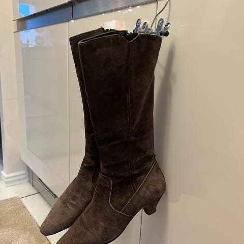 Kavat barnstövlar i storlek 36. Stövlarna är blå och tillverkade i slitstarkt material. Designade för att passa barn och ge skydd vid olika väderförhållanden.