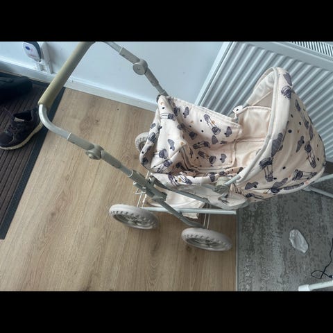 Barnvagn lekcenter med olika aktivitetsfunktioner inklusive former och kugghjul. Tillverkad i plast med färgerna vit, gul, blå, röd och grön. Designad för små barn för att stimulera motorik och lek. Finns musik med blinkande lampa framme. Går bra att hämta också.