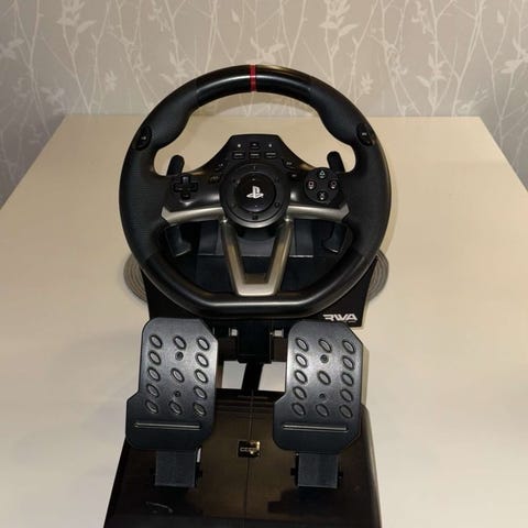 Logitech G29 som passar bra till Dator eller PlayStation. Den har force feedback och funkar bra.