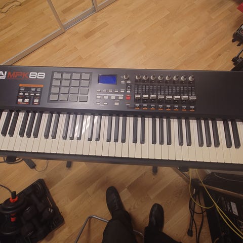 M-Audio Oxygen Pro 61 MIDI-keyboard i nyskick. 61 halvvägda, anslags- och aftertouchkänsliga tangenter, 16 trumpads, arpeggiator samt rattar och reglar. USB, fungerar med Windows & macOS. Säljs p.g.a. flytt. Stativ ingår.
