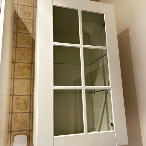 Säljer 3 stycken köksskåp / vitrinskåp som har vitrindörrar på båda sidor.