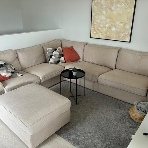 Soffan är i beige sammet