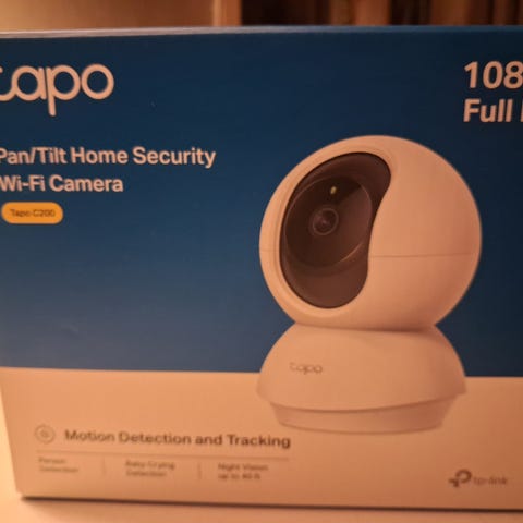 TP-Link Tapo Pan/Tilt Hemövervakningskamera med Wi-Fi-anslutning. Utrustad med rörelsedetektering och nattsyn, erbjuder den 1080p HD-upplösning för klar bildkvalitet. Kameran har en panorering och tilt-funktion för bred täckning och kan fjärrstyras via en app. Designad för hemövervakning med enkel installation och användning. Aldrig upptagen ur förpackning. Hämtas, skickas ej