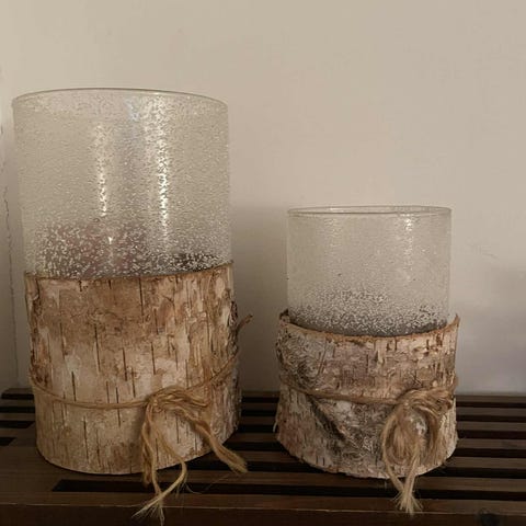 Glasljusstake med trädetaljer