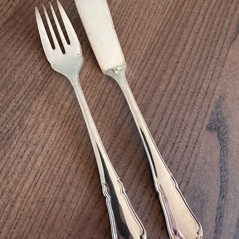 Väggpynt i form av Bestickset i rostfritt stål och vinglas