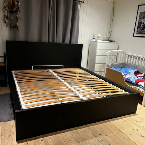 Säljer en svart IKEA Malm sängram i måtten 180x200 cm.