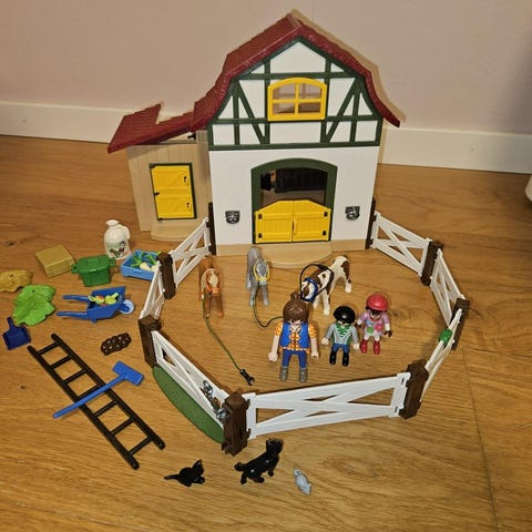 Playmobil djuraffär med många figurer och tillbehör. Ingår bl.a. marsvin, katter, hund, papegoja, möss, kaniner, sköldpadda och ödla. Det som är med på bilderna ingår.