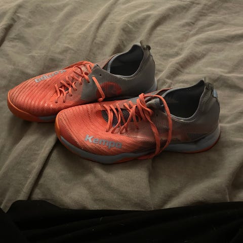 Puma sneakers i svart och rosa färg. Skorna har snörning och gummisula. Använda men i gott skick. Väldigt coola inneskor till gympa i skolan. Storlek 35.