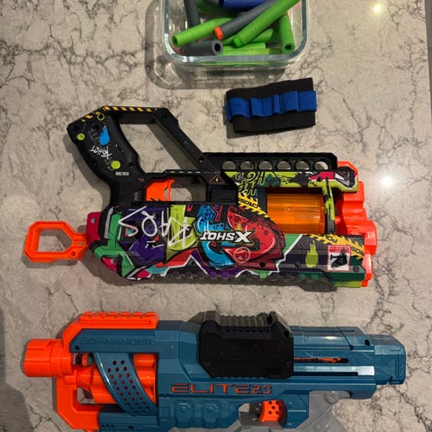 Nerf Nitro-blaster Flashfury Chaos, som skjuter skumbilar istället för pilar/skott.