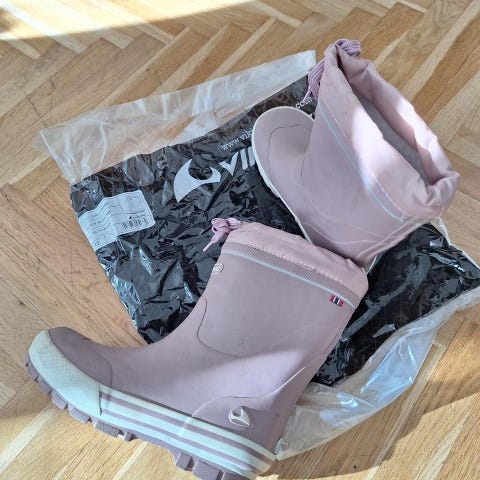 Barnstövlar för unisex i storlek 33. Stövlarna är svarta och tillverkade i ett material som är lämpligt för barn. Designen är enkel och funktionell.