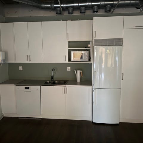 Möbeln monteras fast som man gör med platsbyggd inredning, men vi har inte gjort detta utan delarna går lätt att ta isär för förflyttning vid hämtning.